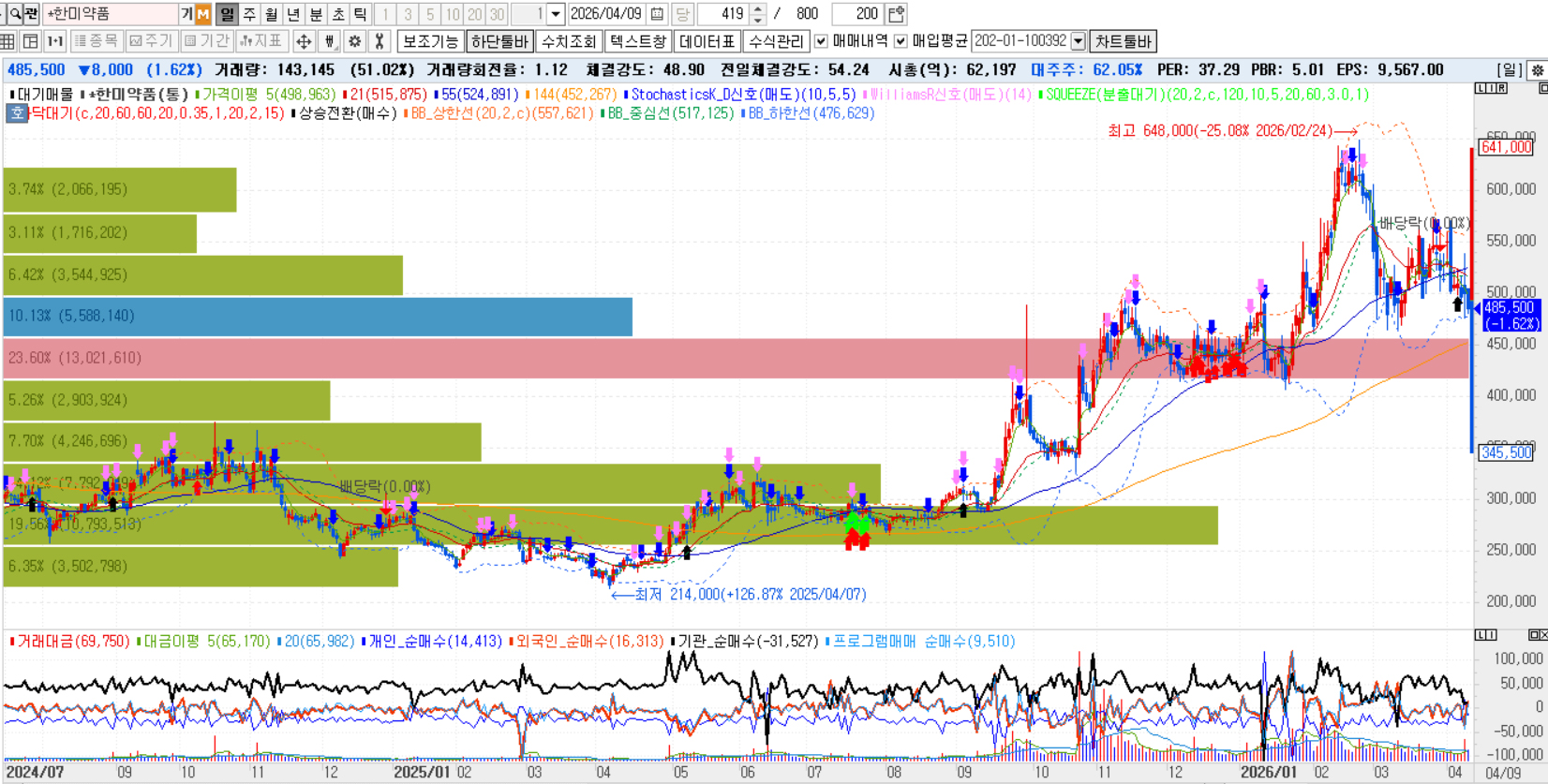 한미약품은 보유할 만한 종목이지만, 지금은 좋은 종목을 비싸게 사지 않는 인내가 더 중요한 자리입니다.