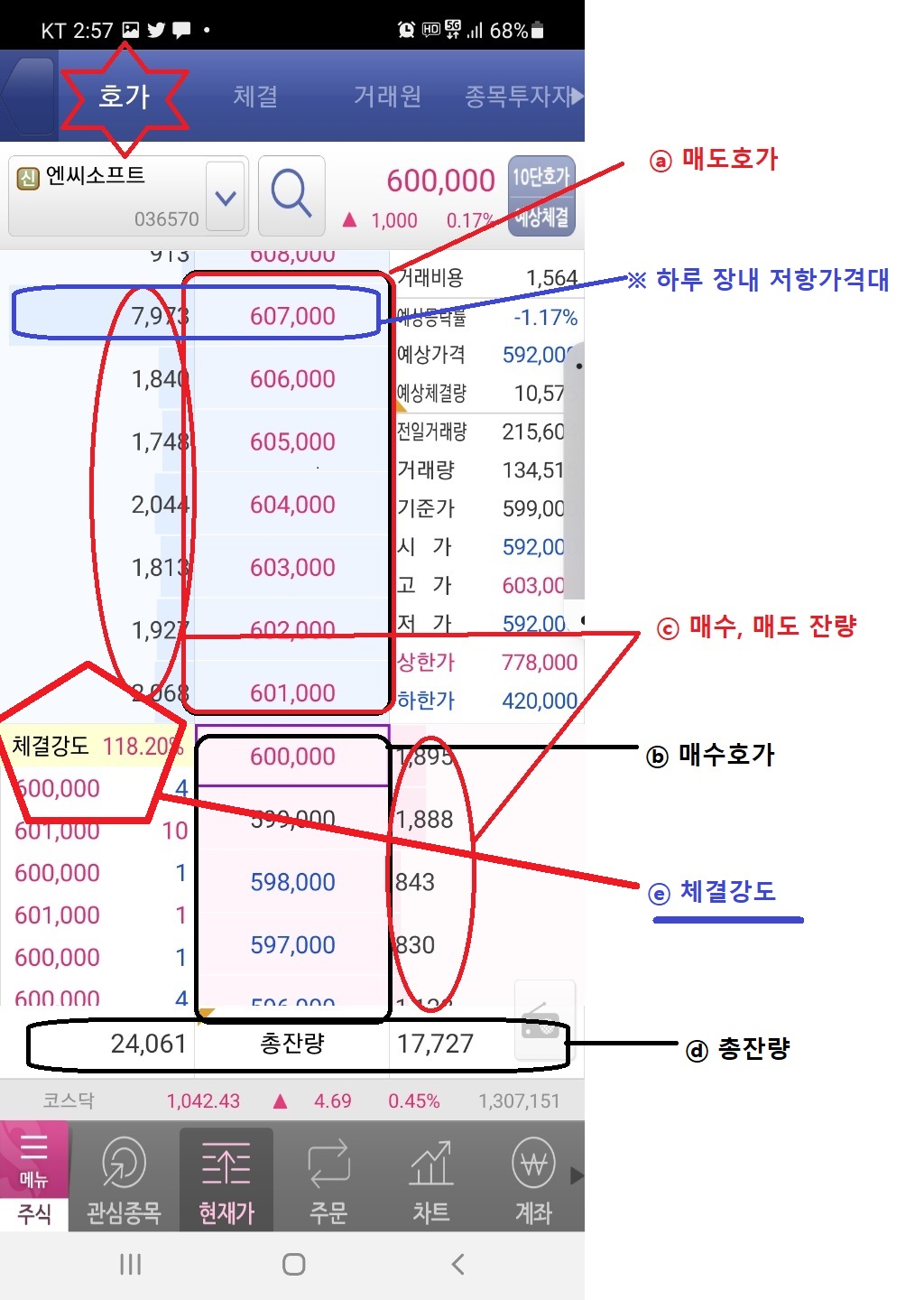 | 호가잔량 | 체결 전·후 매물대 파악 |
